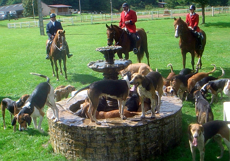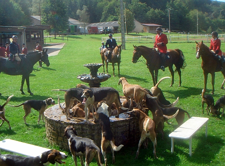 Endlich wieder Hundegebell, Jagdhornklänge, rote Röcke und