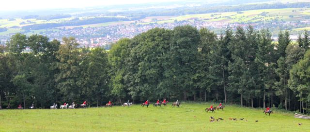 Teil im roten Rock – in flottem Galopp rund um das alte