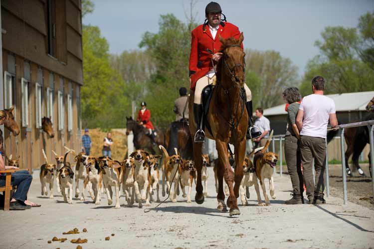 Hier der Jagdbericht von Pascale Callabet in Englisch: The weather could not have been warmer for the yearly April Kollerinsel Hunt in Otterstadt. Bad news for the hounds and horses but great news for the many spectators who always seem to gather early and enjoy the buoyant atmosphere at this fantastic location. ![]() As usual the Erny Family outdid themselves along with their many helpers, in ensuring that the 11am ‘Rendez-vous’ was well stocked with refreshments and morning brezels. For those who didn’t want to bask in the already 18 degrees sunshine, tents were set up with plenty of background music, settling any pre-hunt jitters that some had (the Sekt also helped!). ![]() So off we went to get the horses ready, preparing them for the 15km ride with roughly 30 jumps over the KollerInsel land. Some 60 horses gathered in the outdoor riding arena, with both horse and rider working up a pre-sweat whilst waiting for the big hounds to make an appearance. In the background the Horn Players from Brühl exercised their lungs and announced the arrival of the Hounds and their Master, Gerd M.Klapschus. ![]() It can’t go unmentioned that our Jagdherr Tilmann Laupe was unable to ride due to a dodgy hip and entrusted his fellow friends and hunting buddies to lead us on the hunt. Stefan Gropp and Hans Roth took the front position in the 1st Jumping Group with Hartmut Erny holding the tail end with his stunning stallion. The 2nd Group was led by Rainer Forschner and it has to be noted that they were never far behind!!! And last but not least, a special mention to all the hound handlers who controlled the hounds expertly under somewhat stressful conditions for the hounds. ![]() And so off we went for the 1st run, mainly designed for the spectators, positioned in front of the Clubhouse. A few grumbles were heard beforehand about the 2nd Jump built; too narrow and too wide. Not a great jump, not only as a warm up fence, but as no more than 2 horses could have realistically jumped it at the same time. The other reason; no-one really wanted to fall off in front of so many people right at the beginning of the hunt so most by-passed it!! But someone did fall, luckily uninjured and as we carried on riding we saw the horse disappear into the forest. I believe both horse and rider were later found!! Lots of great jumps followed, the ground was super as always and a few pit-stops for the hounds to drink ensured that the spectators got to see what was going on. ![]() The wonderful tunes of the horns could be heard in the background as the players in their green hunting coats sat under the shade of one of the tractor-trailers. ![]() Half-time consisted of the usual supply of refreshments and sandwiches, the hounds were watered, the riders were also ‘watered’ and I did notice that less beer seemed to drunk this year in the break, with most riders opting for more sugary drinks or water! Proof that we had all ridden at a good tempo and worked up a sweat! ![]() The decision was made to do only the last 2 runs with the hounds due to the heat, so as Gerd changed horses, we set off on a super long run at a sensational pace and plenty of natural jumps. I even recall mentioning to the esteemed Hans that my calves were burning and I’m half his age!!!! ![]() So the hounds joined us for the 2 water ditches, off again at a super pace. One unlucky rider did fall off after the 1st ditch but luckily unhurt as those in front rode on and followed the hounds. We all met up in front of the Clubhouse where the hounds got their well deserved stomach lining to fight over and Halai halali was done to toast the Hounds, Master and riders. Once the horses were washed and safely in the horseboxes it was time for a well earned drink in the sun. ![]() ![]() ![]() A huge thanks to the Erny Family, Rainer Forschner and all the people involved in this massive organisation. The beer was cold, the atmosphere excellent and the food most welcomed. I also need to say a special thank you to Peter for giving me his horse for the day who truly gave me a great honest ride. I look forward to next year as always. |