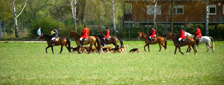 Bei strahlendem Sonnenschein und Temperaturen bis 26 Grad fand die diesjährige Frühjahrsjagd auf der Kollerinsel mit riesiger Zuschauerkulisse statt. Jagdreiter u.a. von Fulda bis aus Illertissen in Bayern waren angereist, um das einmalige Jagdgelände auf der Kollerinsel zu genießen. Die Hunde hatten es bei diesen Temperaturen besonders schwer, ließen sich aber trotzdem nicht beirren. |