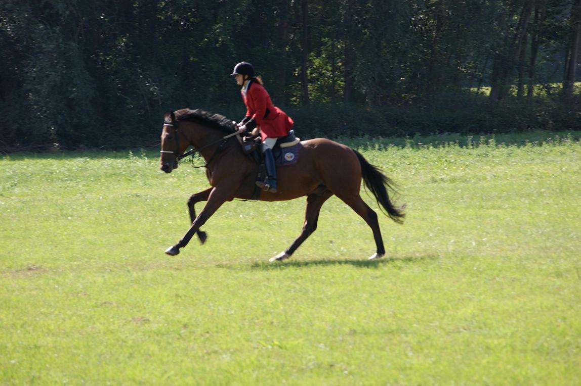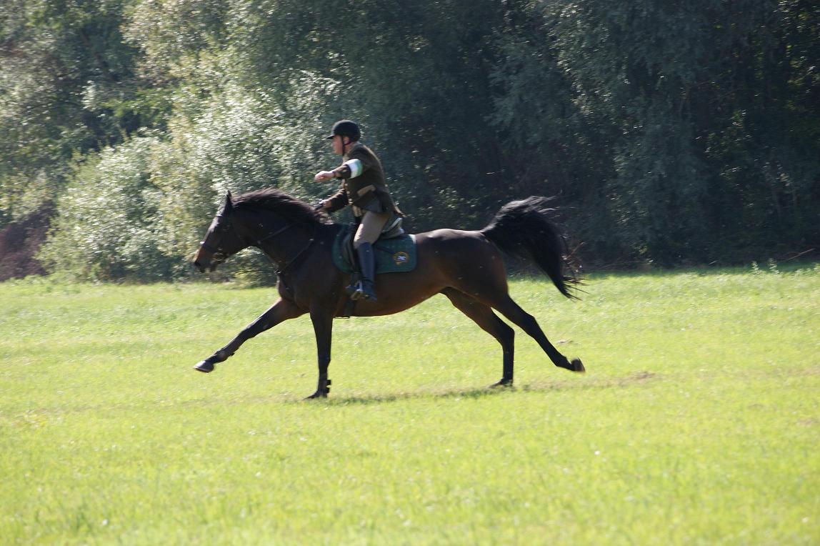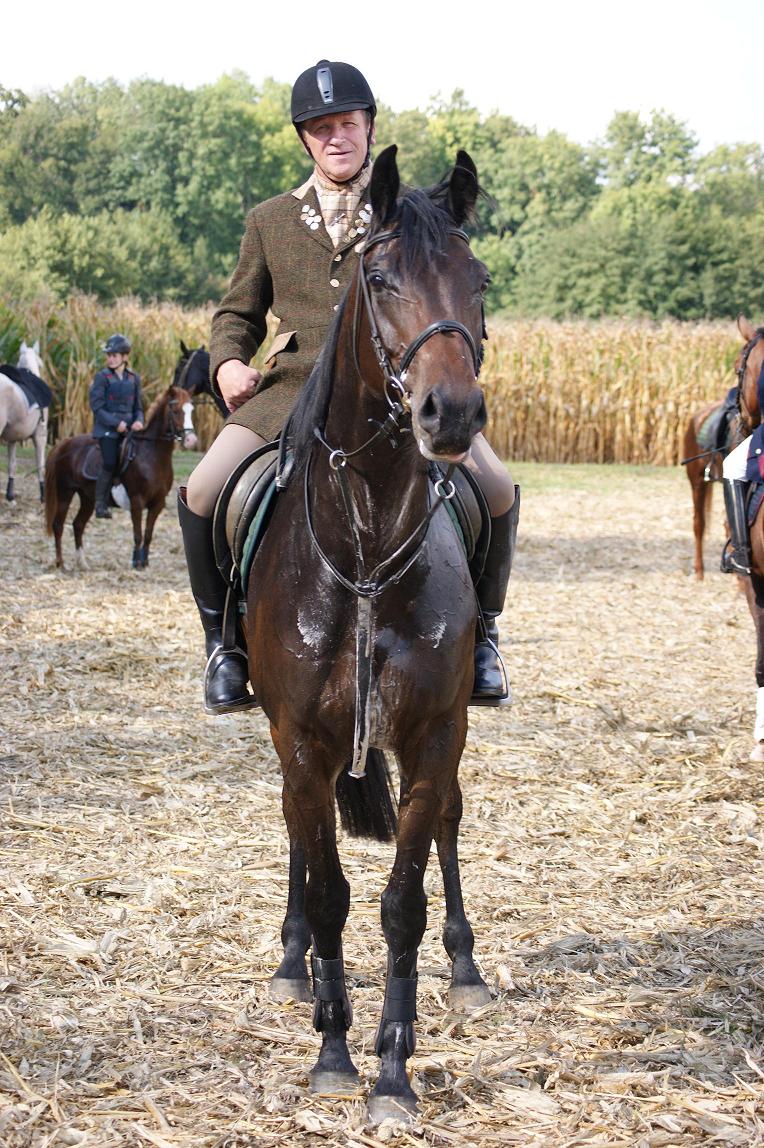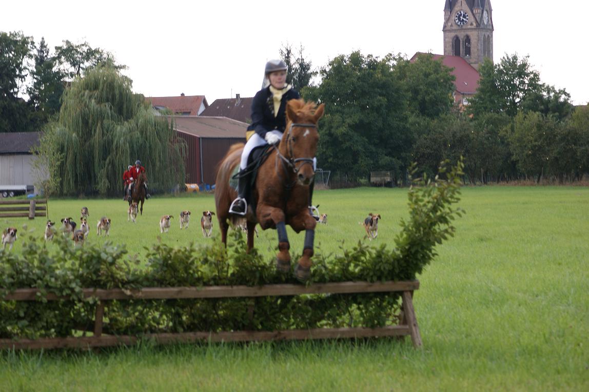 Jagdbericht aus dem 1. Feld Ulrike Naumann hatte mich "auserwählt" über die Jagd in Billigheim zu schreiben, aber was berichtet man Besonderes über einen Jagdtag, an dem einfach alles reibungslos abläuft??? Angefangen mit einer sehr guten Beschilderung ab der Autobahnausfahrt (vielen Dank an die Organisatoren!) über das Wetter, bis zum gemütlichen (und leckeren!) Beisammensein am Ende. Aber der Reihe nach. Am Samstag den 22. September trafen sich auf der Reitanlage des RFV Billigheim ca. 50 Jagdreiter zur mittlerweile 6. Billigheimer Jagd. Es war einer dieser herrlichen Herbsttage, an denen die Sonne warm scheint, der Himmel kitschig blau ist und ein paar kleine Schönwetterwölkchen dafür sorgen, dass es einem im Jacket nicht zu warm wird. Für mich und meine Begleiter war es das erste Mal, dass wir die weite Anreise von der schwäbischen Alb auf uns nahmen. Der vom Navigationsgerät angekündigte Stau der uns zwischenzeitlich doch sehr beunruhigt hatte, befand sich zum Glück nur auf der Gegenfahrbahn, so dass wir mehr als superpünktlich zum Stell-Dich-ein eintrafen und zuerst einmal die warme Sonne vor der Reithalle und die ersten lockeren Plaudereien genossen. Leider haben wir uns dann beim Zeitbedarf fürs Pferde richten erheblich verschätzt. Erstaunlich wie lange es dauern kann bis 3 Pferde und Reiter mit allem Drum und Dran versehen sind.... Somit kann ich über einige Reden beim Aufbruch zur Jagd nur sehr wenig berichten. Ich nehme mal an, dass auch die Vorredner von Verbandsbürgermeister Blank allen Teilnehmern einen schönen Nachmittag wünschten. Und den hatten wir in der Tat! Los ging es zuerst gemütlich im Schritt durch das angrenzende Gewerbegebiet zur ersten Wiese. So waren Hunde, Reiter und Pferde schön aufgewärmt und die Schleppenleger konnten los. Vorbei an den Traktoren mit den Zuschauern auf einer extra gemähten Graspiste zum ersten Hindernis. Die Hunde konnten es kaum erwarten und folgten glücklich und pfeilschnell. Im Anschluss daran erschienen das erste Feld sowie das zweite Feld - für diejenigen, die auch einmal ein Hindernis umreiten wollten. Es schien sich aber größtenteils um erfahrene Jagdreiter oder zumindest Springer zu handeln. Fast alle ritten akkurat Strich und behielten ihre Position im Lauf der Schleppe bei, so dass das Reiten in diesem Umfeld zu einem echten Genuss wurde. Über das zweite Feld kann ich leider nichts berichten außer vielen glücklichen und zufriedenen Gesichtern am Ende der Schleppen. Einer meiner Begleiter hatte am ersten Sprung den Bügel verloren und musste die komplette erste Schleppe ohne Bügel beenden. Beim Versuch, den Bügel zu "fangen" legte er doch einige Schlenker ein, für welche er sich herzlich entschuldigte. Es kennzeichnete sehr schön die ganze Jagd: So viel Spaß, Rücksichtnahme und Achtung für die Mitreiter erlebt man gerne! Die Strecke verlief landschaftlich sehr schön in Schlangenlinien entlang eines Flusses über viele Wiesen und durch einige Wäldchen auf wirklich idealem Untergrund: kein bisschen matschig, nicht zu hart, keine Löcher. Rs war ein Vergnügen in dieser Umgebung reiten zu dürfen. Die Hindernisbauer hatten sich große Mühe gegeben und 25 stabile, breite Hindernisse aufgestellt. Somit war auch das gleichzeitige Springen mehrerer Pferde kein Problem. Für uns hätten es dank der ausgezeichneten Kondition meines Wallachs auf dieser wunderschönen Strecke durchaus noch ein paar mehr Sprünge sein dürfen :-) Besonders der Graben und die letzten Hindernisse vor der Pause machten richtig Spaß. Das Verschnaufen nach der halben Strecke kam bei diesen idealen Bedingungen leider viel zu schnell. Für uns hätte es noch lange so weitergehen können. Die Pause fand auf einem großen abgeernteten Maisfeld statt, so dass genug Platz blieb um die Pferde im Schritt zu bewegen und die Hunde für ihre wohlverdiente Ruhepause eine ruhige Ecke hatten. Nach einer kurzen Erfrischung für alle ging es weiter bis zum "Seehof", wo abermals Getränke gereicht wurden. Im Anschluss ging es über einige wunderschöne Wiesen weiter. Auf der vorletzten Schleppe ritt das zweite Feld vor dem ersten Feld. Somit kamen auch diese Reiter in den Genuss die Hunde bei ihrer ausgezeichneten Arbeit beobachten zu können. Leider folgte daraufhin auch schon die 7. und letzte Schleppe, auf der wiederum die Traktoren samt Zuschauer warteten. Nach dem Halali wurde dann zum Curée beim Reitverein geritten. Dieses fand abermals in strahlendem Sonnenschein neben einem großen Feuer statt - begleitet von den Parforcehornbläsern Baden unter Leitung von Horst Minet. Die Hunde genossen ihre verdiente Belohnung. Danach wurden die Brüche verteilt. Soweit ich mitbekommen hatte, waren alle Teilnehmer gesund und zufrieden anwesend und widmeten sich dann den Leckereien der Küche. Spät in der Nacht rollte dann ein LKW wieder die schwäbische Alb hinauf. An Bord 3 wirklich phantastische (schlafende) Pferde und drei müde aber sehr glückliche Reiter (ok, einer schlief schonmal). Unser Fazit: Eine wirklich wunderschöne Jagd in schöner Umgebung und einem sehr guten Jagdfeld mit äußerst freundlichen und rücksichtsvollen Mitreitern, die den Tag zu einem Genuss machten. Bericht von Daniela Blank ![]() ![]() Bilder erhältlich unter Samuel Hadrosek |