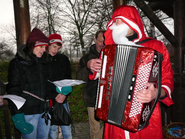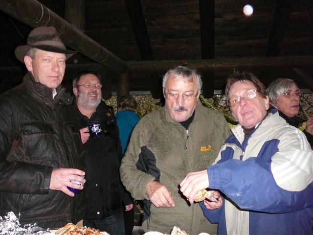 BSV-Weihnachtswanderung in Eggenstein am Sonntag, 16.12.2012 (3.Advent) Auf den Spuren Knecht Ruprechts… „Von drauß‘ vom Walde komm ich her. Ich muss Euch sagen: „Es weihnachtet sehr!“ Allüberall auf den Tannenspitzen sah ich goldene Lichtlein sitzen und droben aus dem Himmelstor sah mit großen Augen das Christkind hervor. Und wie ich so strolcht durch den finsteren Tann, da rief's mich mit heller Stimme an: „Knecht Rupprecht“, rief es, „alter Gesell, hebe die Beine und spute dich schnell! Die Kerzen fangen zu brennen an, das Himmelstor ist aufgetan, Alte und Junge sollen nun von der Jagd des Lebens einmal ruh‘n und morgen flieg ich hinab zur Erden, denn es soll wieder Weihnachten werden!“ … von Theodor Storm ![]() Weihnachten ist die Zeit, in der die Mitglieder des Badischen Schleppjagdvereins e.V. das Jahr gemütlich ausklingen lassen. Mit Sekt und leckerem Fingerfood wurden alle herzlich bei Familie Hauck empfangen und trotz des verregneten Wetters ließen sich die ca. 25 Jagdreiterfreunde nicht von der alljährlichen Weihnachtswanderung abschrecken. So liefen alle Zwei- und die Vierbeiner dick eingepackt einen Teil der Eggensteiner Jagdstrecke zum Glühwein trinken und Stollen essen. Zwischendurch wurde gelacht und gesprungen, sodass Mistelzweige erklommen und Jagdhindernisse überwunden wurden. Auch Knecht Ruprecht scheute sich nicht und fand den Weg zur Hardtmeute nach Eggenstein. So wurden die kleinen Zwei- und auch die Vierbeiner (Hunde) reichlich beschenkt und bei weihnachtlichem Gesang wurde der Besuch wieder verabschiedet. Tapfer durch den Regen watend kehrten schließlich alle glücklich in die warme Gaststube zurück. Zusammen beim Abendbrot erhielten Gerd und Andrea noch eine Kleinigkeit zu Weihnachten als Dankeschön für die Betreuung und Ausbildung der Hunde. Für Werner und Ursel Haucks Mühen im Rahmen dieser wiederum sehr gelungenen Feier möchten wir uns ebenfalls herzlich bedanken. ![]() Im Namen der Hardtmeute wünsche ich allen ein frohes Weihnachtsfest, ein paar besinnliche Tage und einen guten Rutsch in das neue Jagdjahr 2013! Ulrike Dressel weiter Impressionen der Weihanchtsfeier: Fotos von Heinz Müller, Neureut ![]() ![]() ![]() ![]() ![]() ![]() ![]() ![]() ![]() ![]() ![]() |