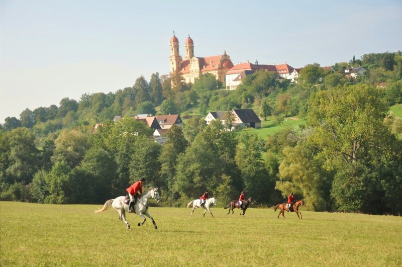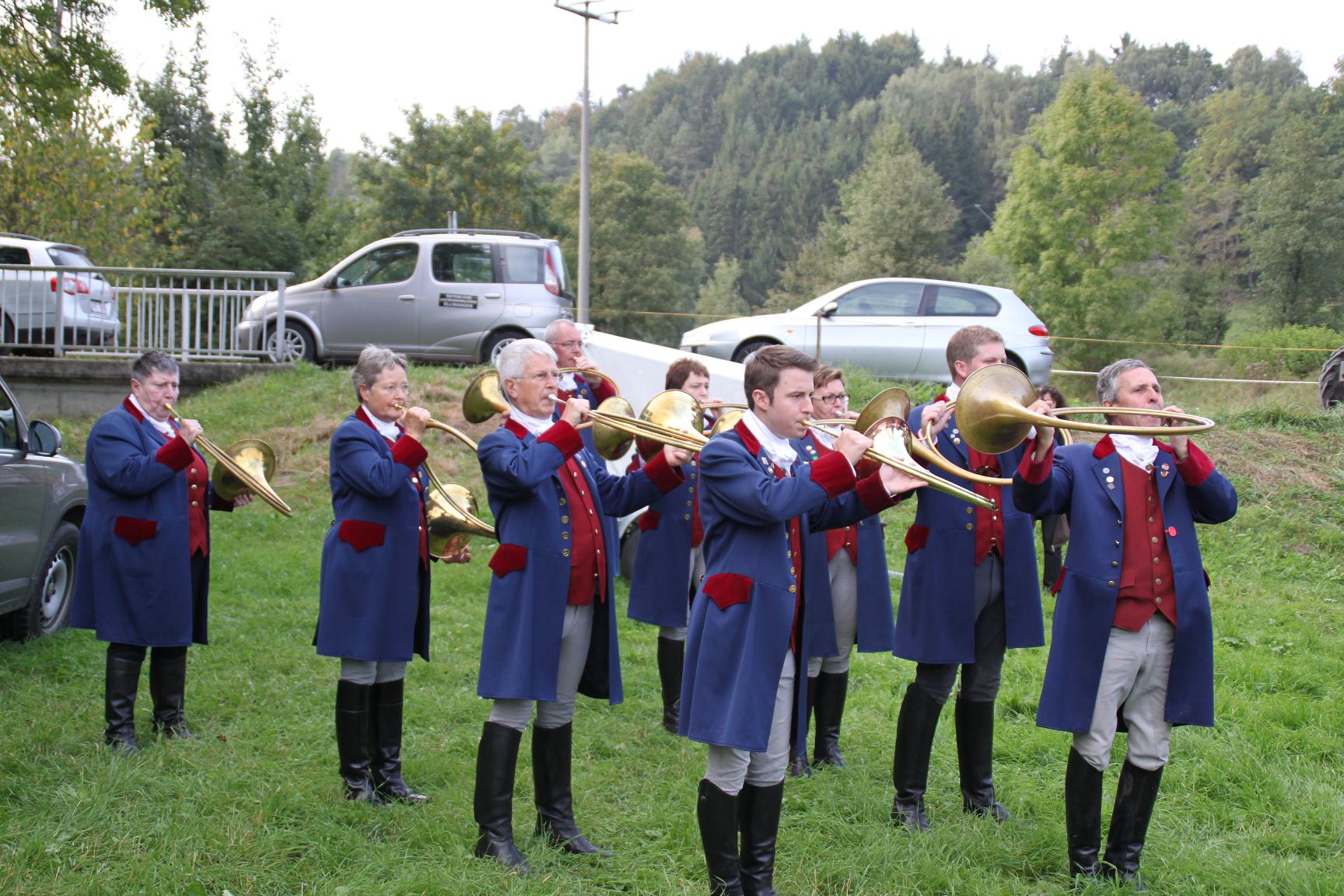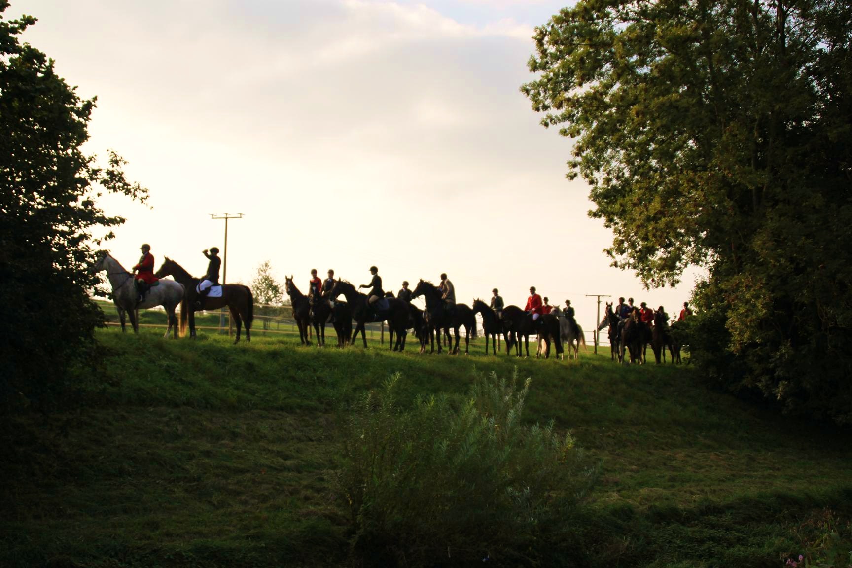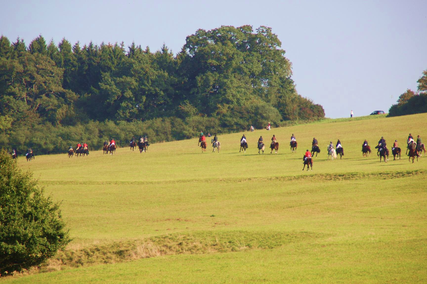 „Jagdreiten ist die Krone und der Gipfel der reiterlichen Betätigung im Gelände“, schreibt Waldemar Seunig in seinem Standardwerk „Von der Koppel bis zur Kapriole“. So versammeln sich dann auch über 75 Reiter bei strahlendem Herbstwetter im Innenhof des Schlosses Ob Ellwangen zur 11. Ellwanger Schleppjagd. Es ist ein Rekord, so viele Teilnehmer hatte die Jagd noch nie. Nach einem Umtrunk spielen die reiterlichen Jagdhornbläser Ellwangen unter der Leitung von Monika Willand, die an diesem Tag ihren 76. Geburtstag feiert, zum Aufbruch. Geritten wird in drei Feldern. Für die jugendlichen und unerfahreneren Reiter gibt es ein Beobachtungsfeld. Die Jagd führt in einem Rundkurs um die Wallfahrtskirche Schönenberg, die von fast jeder Schleppe aus im goldenen Septemberlicht zu sehen ist. Die Reiter verlassen das Schloss durch den alten Wassergraben, und die erste Schleppe folgt schnell. Im rasanten Galopp folgen die Reiter den schnellen und spurtreuen Hunden, die vom Master Gerd Klapschus und seiner Equipage sicher geführt werden. Die Zuschauer verfolgen das Geschehen auf drei Anhängern, die von Traktoren gezogen werden. Weiter geht es nach einem kurzen Stopp durch das Holbachtal, wo fünf jagdgerecht gebaute Hindernisse zu überwinden sind, zur Rast bei Kalkhöfe mit einem reichhaltigen Büffet. Von dort geht es gleich weiter auf die nächste Schleppe entlang der Jagst mit zwei Hindernissen und sodann Richtung Rindelbach, wo drei Sprünge zu nehmen sind, unter anderem ein Strohballenhindernis nach einem Bergabgalopp und ein Aufsprung. Danach dürfen sich die Hunde in der Jagst abkühlen, dann reiten wir vorbei an der alten Jagstbrücke auf die letzte Schleppe, mit zwei Baumstammhindernissen, zum Halali und Curée an der Rinderburg. Oberbürgermeister Hilsenbeck, der Schirmherr der Jagd, begrüßt die glücklichen und erhitzten Reiter. Die Pferde dampfen, die Hunde erhalten den wohlverdienten Pansen und die Reiter ihren Schnaps und die Brüche. Eine tolle Jagd mit ein paar harmlosen Stürzen, die glimpflich ausgehen, geht zu Ende. Dank Eddy Schusters Gastfreundschaft, er ist einer der Jagdherren, hat auch unser Pferd ein Nachtquartier in Ellwangen gefunden und wir können die Jagd bei einem zünftigen Essen und netten Gesprächen unter Jagdreiterfreunden im Barbarossakeller ausklingen lassen. Nach einem umfangreichen Frühstück im Reiterstüble fahren wir am Sonntag glücklich aber erschöpft nach Stuttgart zurück. Jagdbericht von Katja Grimm ![]() Ellwanger Schleppjagd ist ein Naturerlebnis pur Schöne Rösser und stolze Reiter in großartiger Landschaft – Mehr Teilnehmer als je zuvor Von Petra Rapp-Neumann, Ipf und Jagst Zeitung Was für ein Schauspiel. Pferdeleib an Pferdeleib, schnaubende Nüstern, schmucke rote Röcke, aufgeregt bellende Hunde, in der frühherbstlichen Luft eine aromatische, fast animalische Mischung von Sherry, mit dem die Reiter begrüßt werden, und Rossäpfeln – es ist Ende September und damit wieder Zeit für die vom Reitverein Rindelbach veranstaltete und bestens organisierte Schleppjagd. Im Innenhof des Ellwanger Schlosses drängen sich 73 stolze Reiter – ein Rekord, so viele Teilnehmer gab es noch nie bei einer Schleppjagd, die in der Pferdestadt Ellwangen lange Tradition hat. Auch in diesem Jahr können Zuschauer die Jagdstrecke geführt in Planwagen begleiten. Geritten wird in drei Feldern einmal rund um den Schönenberg. Das dritte Feld ist für weniger geübte Reiter. Schon rufen die Signale der Reiterlichen Jagdhornbläser unter Monika Willands Leitung zum Aufbruch, dreimal ein kräftiges „Horrido“, dann verlassen Rösser und Reiter unter Hufgetrappel das Schloss. In die drei Planwagen passt beim besten Willen niemand mehr hinein, die Traktoren ziehen an, und los geht’s über Stock, Stein und den Schlossgraben. Die Schleppjagd wird zum 11. Mal hinter der Hardtmeute des Badischen Schleppjagdvereins geritten. Die Hunde haben die Spur der Schleppenleger aufgenommen, das erste Reiterfeld ist schon am Horizont verschwunden. Die Strecke mit sorgfältig präparierten Hindernissen ist rund 15 Kilometer lang. Auf einer Wiese bei Holbach knickt ein Pferd an einem Graben ein, die junge Reiterin kann sich nicht mehr im Sattel halten, beide kommen mit dem Schrecken davon. Über den Hofforstquerweg zuckeln die Planwagen durch den dunklen Tann in Richtung Kalkhöfe, wo Reiter, Pferde, Jagdhornbläser und Zuschauer zünftig im Grünen vespern. Gestärkt geht die wilde Jagd weiter und nähert sich bereits ihrem Ende, als plötzlich ein Pferd ohne Reiter am Planwagen vorbei galoppiert. Nichts passiert, erfahren wir später und sind sehr erleichtert. An der Rinderburg versammelt sich die Jagdgesellschaft zum Curée. Die Hunde fetzen sich um den frischen Rinderpansen, ihren symbolischen Anteil an der Jagdbeute. Oberbürgermeister Karl Hilsenbek, erneut Schirmherr der Schleppjagd, begrüßt die Jagdgesellschaft, freut sich über den Teilnehmerrekord, gratuliert Monika Willand zum Geburtstag und schenkt ihr – Ellwanger Rossäpfel. Ein letztes Halali, ein Schnapserl auf die geglückte Jagd, dann ist die 14. Ellwanger Schleppjagd Geschichte und wird als unvergessliches Erlebnis in Erinnerung bleiben. ![]() ![]() ![]() ![]() Mit der Hardt-Meute auf Jagd Schleppjagd des RFV Rindelbach und der Reiterlichen Jagdhornbläser verbucht Teilnehmerrekord Von FRANZ RATHGEB, © Schwäbische Post 30.09.2013 Nach einer längeren Pause wurde vor zehn Jahren in Ellwangen erstmals wieder eine Schleppjagd veranstaltet. Am Wochenende ging nun die elfte vom RFV Rindelbach und den Reiterlichen Jagdhornbläsern organisierte Jagd über die Bühne. Angeführt von der Hardt-Meute des Badischen Schleppjagdvereins, ritten heuer insgesamt 78 Reiter durch das Jagsttal. Zum Jubiläum hatte sich die stolze Zahl von 78 Reitern auf Schloss Ellwangen eingefunden. Jagdherr Magnus Lang hieß diese und die rund 100 Zuschauer willkommen. Lang dankte den Organisatoren und Helfern, dass sie 