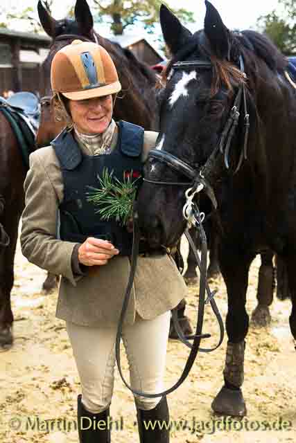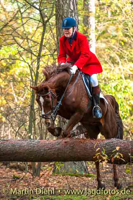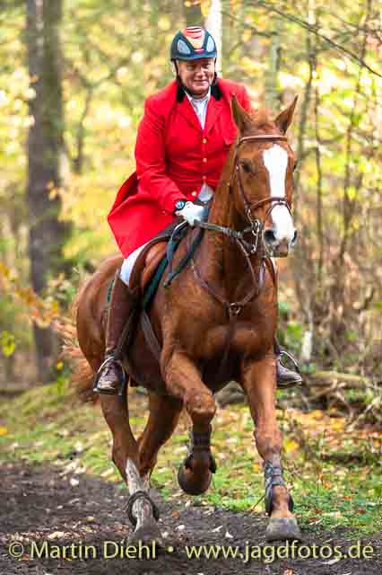![]() Bericht einer Jagdreiterin: Bei schönem Wetter angekommen gab es erst ein Büfett mit sehr leckeren Häppchen beim Stelldichein. Gut gestärkt nach nettem Plausch mit netten Leuten ging es auf den Reitplatz. Nach der Begrüßung und Rede des Jagdherrn ging es in ruhigem Schritt los. Die erste Schleppe wurde gelegt und das Tempo zog rasant an. Nun ging es im schnellen Gallopp den Hunden hinterher durch den Wald. Der Weg ging in Schlangenlinien, was dem Tempo aber keinen Abbruch tat. In kleinen Ausbuchtungen am Wegesrand konnte, wer wollte, die Hindernisse mitnehmen. Es gab auch Bergauf- und Bergabsprünge sowie einen kleinen Graben. Zwischendurch gab es ein kleines Durcheinander der Felder, welches sich aber schnell klärte. Sonja ..., die das erste Mal als Schleppenlegerin fungierte, machte ihre Sache sehr gut. Auf kleinen Lichtungen im Wald konnten sich Hunde und Pferde zwischen den Schleppen erholen. Zurück in der Reitanlage gab es einen kleinen Imbiss und Getränke. Die zweite Runde viel wesentlich kleiner aus, aber ich hatte das Gefühl, dass das Tempo noch höher war . Den Weg zum Reitplatz - noch in vollem Gallopp - herunter hieß es dann "Halali Halali" und alle waren froh über eine unfallfreie Jagd an einem so herrlichen Sonntag im November 2013. Bei einem Lagerfeuer erhielten die Hunde ihre verdiente Currée und die Reiter einen Schnaps, den Jagdknopf und einen Bruch. Nach dem Versorgen unserer treuen Rösser gab es ein fürstliches Mahl, welches aus Wildschweingulasch mit Knödeln und einer mit Preiselbeeren gefüllten Birne bestand und wir ließen es uns in geselliger Runde schmecken. Waidmanns Dank für diese schöne Jagd. Berichterstatterin: Simone Kirschner ![]() ![]() ![]() ![]() ![]()