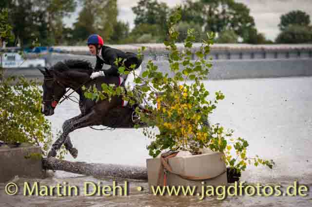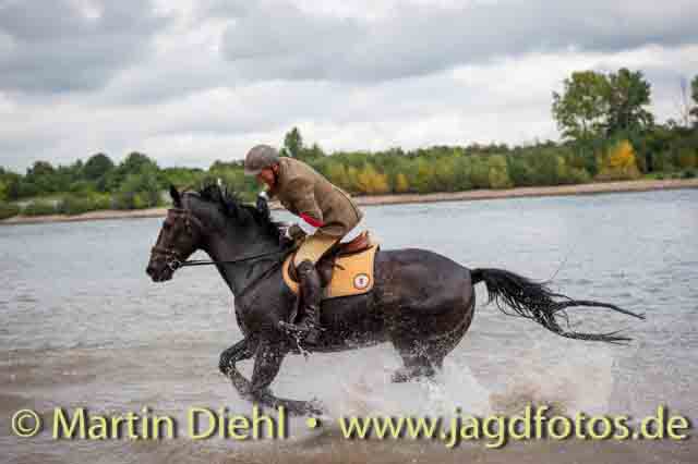 ![]() Jagdbericht 20. Landesschleppjagd Rheinland-Pfalz auf Hofgut Petersau, Frankenthal – 08.09.13 Meine Heimat ist der Ursprung des Rheins, das schöne Graubünden in der Schweiz. Zuhause ist es unvorstellbar, im Rhein zu schwimmen, sei es wegen dem ungenügend hohen Wasserstand, der Wucht des oft ungestümen Wassers oder aber der stets eher tiefen Temperatur des Flusses. Da hörte ich doch zweimal hin, als Andreas Haberer mir schon vor einem Jahr versprach, auf der Petersauer Jagd könne man sogar im Rhein über jagdliche Hindernisse springen! Seine Worte fanden Anklang und so nahmen wir am besagten Sonntag freudig den Weg unter die Räder Richtung Frankenthal. ![]() Wohlgesegnet nach der Hubertusmesse im verträumten Innenhof des Hofguts Petersau und gestärkt mit einem Prosecco während des Stelldicheins, wird die muntere Reiterschar mit den 45 Pferden, die Hunde und die Equipage vom Jagdherrn Carlo von Opel und Streckenbauer Andreas Haberer begrüßt. Begleitet werden sie von den munteren Klängen der Jagdhornbläser. ![]() ![]() Die Nerven unserer Tiere sind schon jetzt gespannt, wohlwissend, was bald folgt. In freudiger Erwartung der Strecke reiten wir los. Nach einigen Minuten ändert die Gangart und wir sichten die ersten Sprünge. Uns wurde nicht zu viel versprochen! Die erst noch nervösen Pferde beruhigen sich langsam ein wenig – die Hindernisse verlangen ihnen Konzentration ab. Nach der ersten Schleppe sieht man überall strahlende Gesichter, wie macht es doch Spaß! ![]() ![]() ![]() ![]() Ein weiteres Highlight folgt sogleich, unser erstes schultertiefes Bad im Rhein. Mein Pferd staunt nicht schlecht, als nahe an uns Jachten und Fähren vorbeituckern und schon mal eine Welle schlagen! Doch das wohltuende Nass besänftigt, wir haben eine neue Lektion gelernt und die Pferde sind gut vorbereitet auf den Sprung im Wasser. ![]() ![]() ![]() ![]() ![]() ![]() Weiter führt die Strecke unter der imposanten Autobahnbrücke durch zurück über die Felder, gespickt mit attraktiven Geländehindernissen. Spannend auch für die zahlreichen Zuschauer und die Jagdhornbläser, welche unseren gesamten Ritt begleiten. ![]() ![]() ![]() Jetzt kommt sie, die Rhein-Schleppe. In zügigem Galopp in oder am direkten Ufer des Rheins kriegt man immer wieder einen Spritzer ab, doch wirklich merken tut keiner das kühle Nass. Das Wasser macht allen großen Spaß, sowohl den Vierbeinern als auch den Reitern. Mein Pferd zieht immer wieder freiwillig in den Fluss und ist ganz begeistert von der tollen Abwechslung. ![]() ![]() ![]() ![]() ![]() ![]() ![]() ![]() An Tempo fehlt es uns meist nicht, daher muss unser Feldführer hin und wieder ein strenges Wort einlegen, um im ersten Feld für Ordnung zu sorgen. So können wir dann auch unfallfrei und glücklich zur Curée in den Innenhof des Hofguts Petersau gelangen. ![]() ![]() Da werden wir mit einem prächtigen Holzfeuer in der Mitte des Reitplatzes empfangen. Nach Gruß- und Dankesworten der Jagdherren steigen die Reiter zu Ehren der Hunde ab, welche sich nun nach getaner Arbeit dem wohlverdienten Pansen widmen. ![]() ![]() ![]() ![]() ![]() Müde und zufrieden machen wir uns auf den Heimweg. Ein erlebnisreicher Jagdtag geht zu Ende, ein für Mensch und Tier durchwegs gelungener Anlass. Berichterstatterin: Carina Marugg ![]() |
