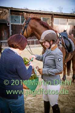 ![]() Mannheim-Friedrichsfeld (29.03.2014) von Jasmin Rehn Die Frühjahrsjagd in Mannheim-Friedrichsfeld fand unter traumhaften Bedingungen bei frühsommerlichen Temperaturen unter der musikalischen Begleitung der Parforcehornbläser St. Georg und den Bläsern der Jagdgesellschaft Seckenheim statt. Vom Stelldichein, welches sich durch ein großartiges Büffet kennzeichnete, bis zur Überreichung des wohlverdienten Bruchs und Jagdtrunk beim Halali war die Veranstaltung der reinste Genuss. Und so war auch der Ritt für die ca. 40 Jagdreiter und deren Pferde eine wahre Freude. Die kurvenreiche Piste über sandige Strecken und die stimmungsvollen Klänge der Jagdhornbläser durch den Wald ließ keine Wünsche offen und konnte über das Fehlen der Hunde an diesem Tag hinweghelfen. Nach etwa einer Stunde erreichte das Feld die Reitanlage zur Pause und durfte sich mit Getränken und Laugengebäck stärken, ehe es erneut auf die letzten drei temporeichen Schleppen ins Gelände ging. Ohne größere Zwischenfälle galoppierte die Jagdgemeinschaft am Ende unter den Augen der zahlreichen Zuschauer auf den großzügigen Reitplatz der Reitanlage Friedrichsfeld. Am Ende des Halalis, gespielt durch die Saarbrücker Bläser, dankte Jagdherr, Rainer Forschner, den Teilnehmern für eine disziplinierte unfallfreie Jagd, allen Helfern und Unterstützern für einen wunderschönen Jagdtag. Auf das anschließende köstliche Abendessen mit gemütlichem Beisammensein folgte ein äußerst amüsantes Jagdgericht, welches mit der Verleihung eines Jagdrockes beschlossen wurde. Zusammenfassend kann dieser Veranstaltung mit gutem Gewissen das Gütesiegel „äußerst gelungen“ verliehen werden! Vielen Dank an die Veranstalter! ![]() ![]() ![]() ![]() ![]() ![]() ![]() ![]() ![]() ![]()