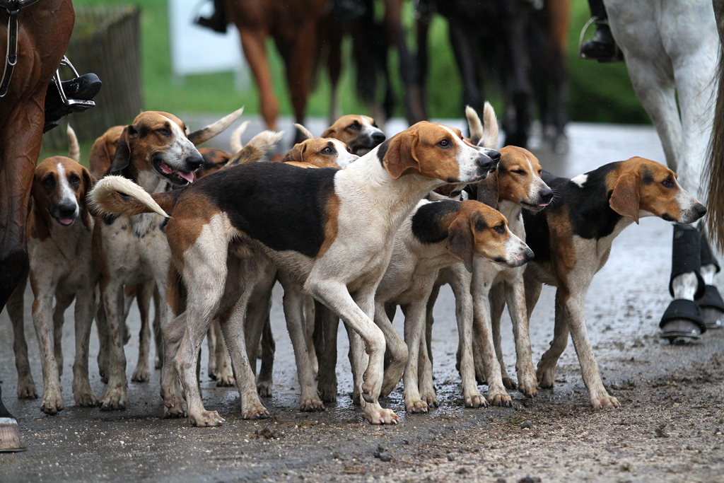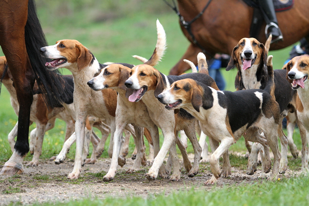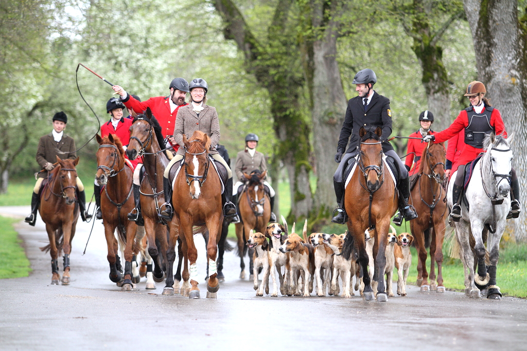 jagdlicher Ausritt mit unseren Grand-Anglo-Francais-Hunden.