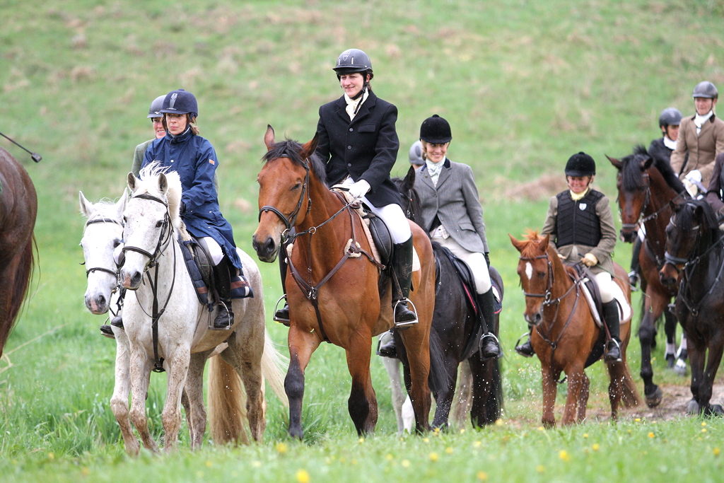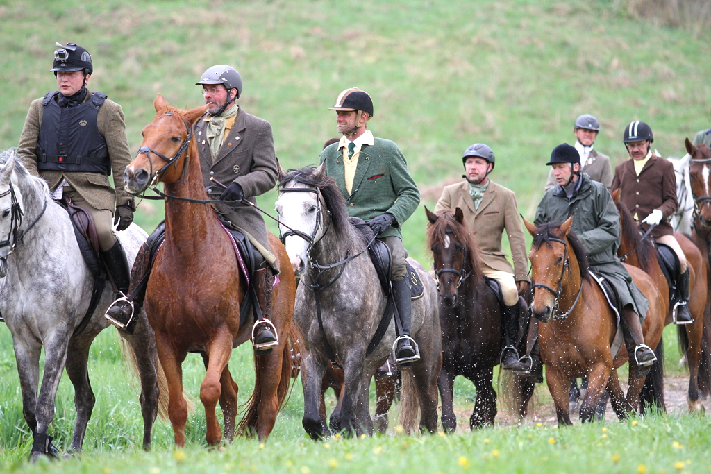 Jagdfelder. Anscheinend kosteten es alle Reiter gesellig aus die Handschuhe zu lüften und Küsschen zu verteilen.
