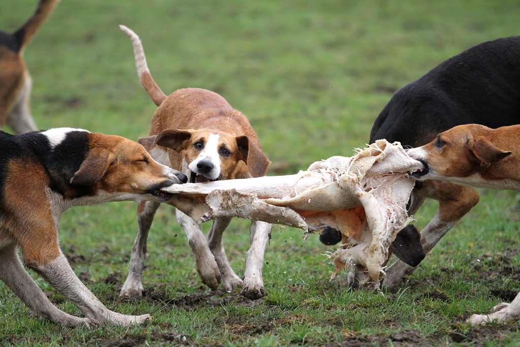 Wieder am Gestüt angekommen, bekamen die Hunde zum Dank Ihr Curée und die Schleppjagd war zu Ende.