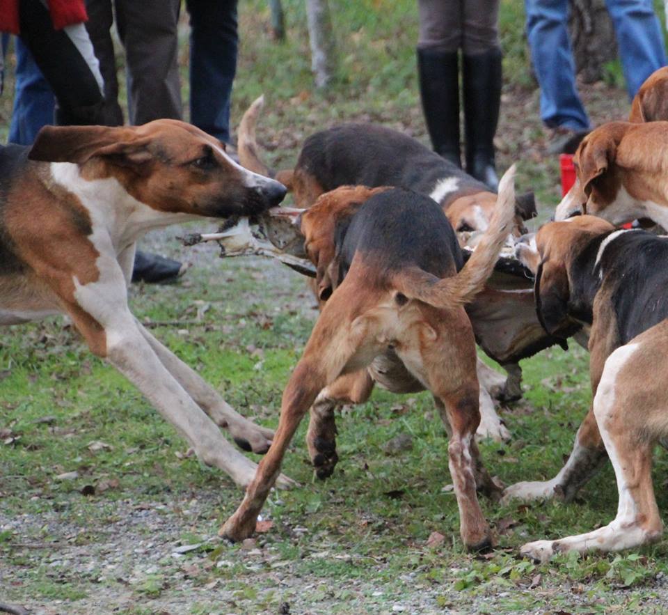 ![]() Spät in der Saison, es ist November, die Hunde und Pferde sind auf der Höhe ihrer Leistungsfähigkeit, dann ist Schleppjagd in Mannheim-Friedrichsfeld. Wie immer, in den letzten 24 Jahren, hat Rainer Forschner geladen und es kamen bei trockenem, sonnigen Herbstwetter um 12°C Jagdreiter aus dem ganzen Südwesten. Zu Beginn des Stelldicheins war der Andrang noch sehr übersichtlich, aber bis zur Aufstellung fanden sich fast 60 Reiter auf der Anlage des Reit- und Fahrvereins Friedrichsfeld ein und der Jagdherr strahlte, der selber aufgrund einer Verletzung leider nicht mitreiten konnte. Vereinsvorstand Michel Mühlbauer verwöhnte die Gäste wieder auf unnachahmliche Weise aus seiner Casino-Küche. Nach der Begrüßung und Einteilung in 2 Feldern ging es im Schritt auf die bekannte Strecke, kurvenreiche Waldschleppen mit unzähligen jagdgerechten Hindernissen. Die erste Schleppe, gefühlte 3 km lang, auf gewundenen Waldwegen mit, wie angekündigt, bestem, griffigem Sandboden nahm schonmal den ersten Dampf aus den Pferden. Die Hunde taten ihre Arbeit sehr gut und sehr schnell und trotz Überschießens musste das Feld nicht anhalten. Die vielen Spaziergänger mit Ihren Hunden, die teilweise auf den Schleppen standen oder diese kurz vor den Hunden überquerten, ließen die Grand-Anglo-Francais unbeeindruckt. Das gipfelte nach der 3. Schleppe auf einer Waldkreuzung in folgendem Ereignis: Die Hunde waren abgelegt und das Feld galoppierte eben heran, als plötzlich ein Reh sich aus dem Wald mitten in die Meute stürzte, 2-3 verdutzte Hunde umriss, selbst kurz hinfiel, sich aufrappelte und mit weiten Sprüngen im Unterholz das Weite suchte. Ein Teil der Meute folgte dem Reh, während der Rest wie gelähmt zurückblieb. Master Gerd Klapschus reagierte sofort und folgte den Hunden parallel auf einem Weg und konnte sie mit dem Signal des Hunting Horns unmittelbar wieder zurückholen. Dies passierte alles so schnell, dass das Feld davon fast nichts mitbekam. Die Hunde wurden daraufhin zur nächsten Schleppe angeführt und weiter ging die schnelle Jagd aus dem Wald hinaus zur Rast. Die Jagd war wie gewohnt sehr schnell – oder sogar schneller? Auf tollem Geläuf konnten fast 30 Hindernisse bewältigt werden. Zum Halali und zur Curée ging es dann wieder auf den Reitplatz. Hier waren die Hunde schlau, denn sie kennen die Strecke und prompt nahmen sie eine Abkürzung. Nach dem Versorgen der Hunde und Pferde gab es – wie in jedem Jahr – ein hervorragendes Jagdessen, viele tolle Gespräche unter den Jagdreitern und lauter strahlende Gesichter. Horrido und bis zum nächsten Jahr! ![]() Und zum Schluss nicht zu vergessen: Ein Dank an all denjenigen, die zum Gelingen dieses schönen Tages beigetragen haben! ![]() weitere Bilder folgen! Vielen Dank an Susann van den Ecker für die Bilder! |