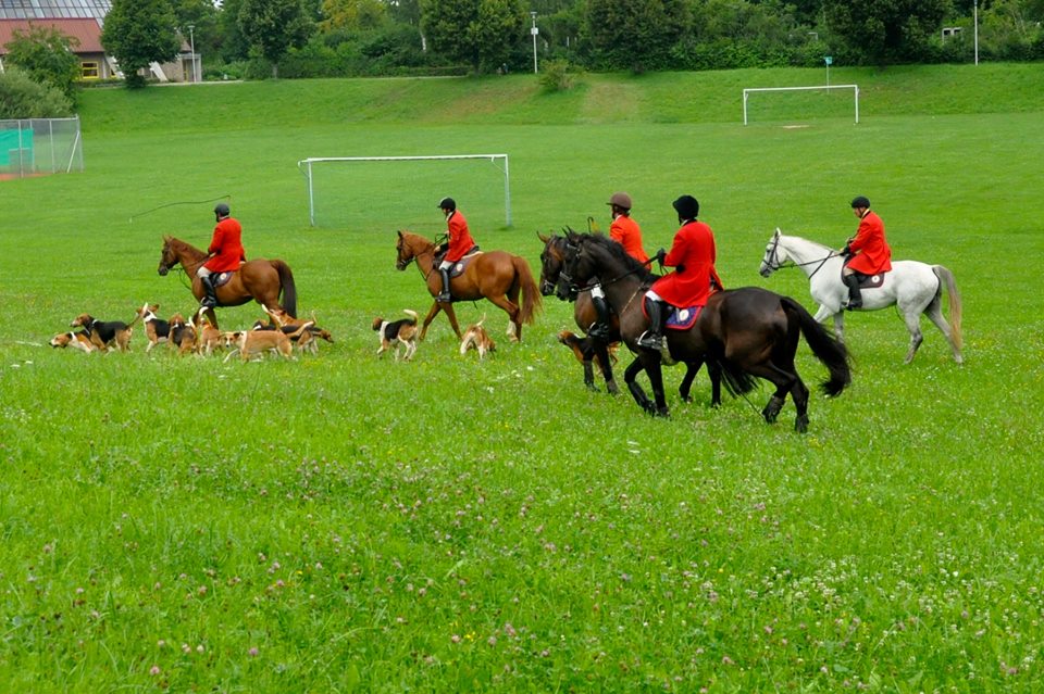 7 Koppeln Hunde trafen sich zum kleinen Stelldich. Nach der Stärkung wurde zum Lösen für Hunde, Pferde